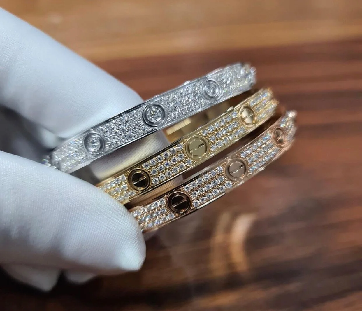 18k Yellow Gold Cartier Love Bracelet with 2 carats of F color, VS clarity diamonds. Available on order.