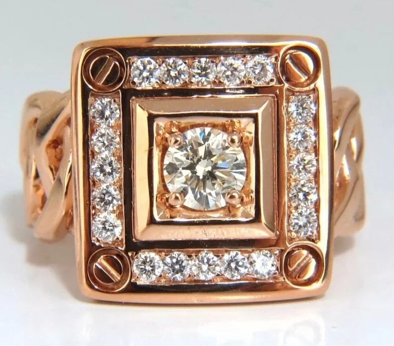 Unisex 14k Rose Gold Cuban ring with 1 total of 1.3 carats of G color, VS clarity diamonds. Available on order in multiple colors and sizes.